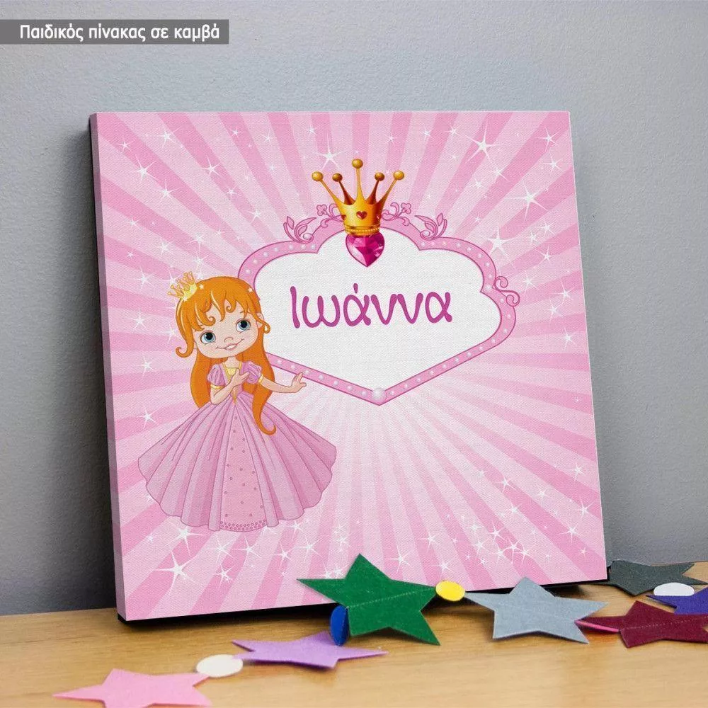 Πίνακας παιδικός σε καμβά My princess, με όνομα
