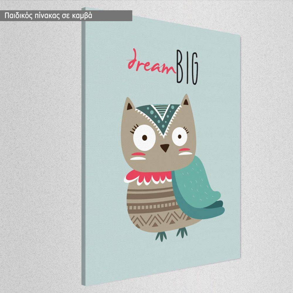 Πίνακας παιδικός σε καμβά Owl dream big