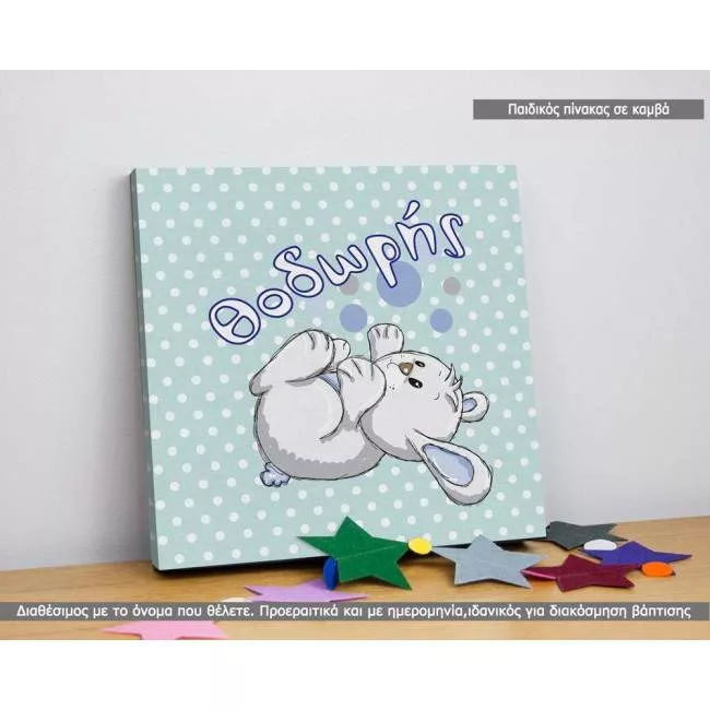 Πίνακας παιδικός σε καμβά Παιχνιδιάρικο κουνελάκι με όνομα
