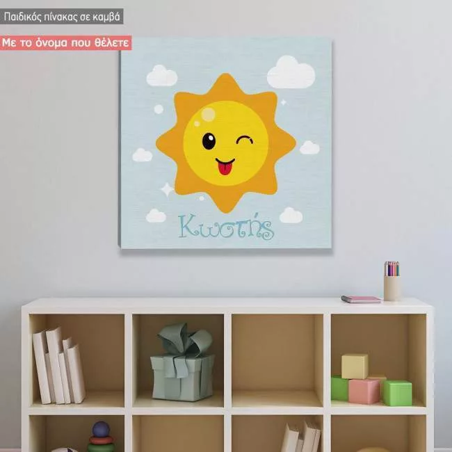Πίνακας παιδικός σε καμβά Παιχνιδιάρης Ήλιος, με όνομα