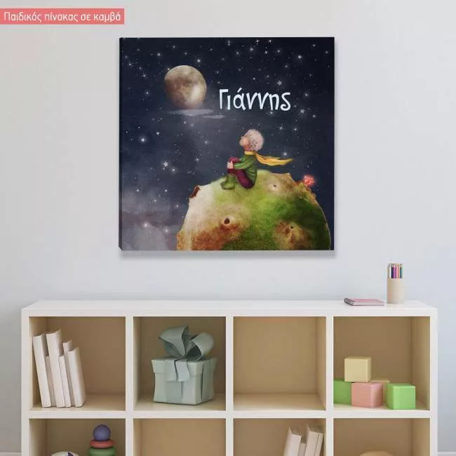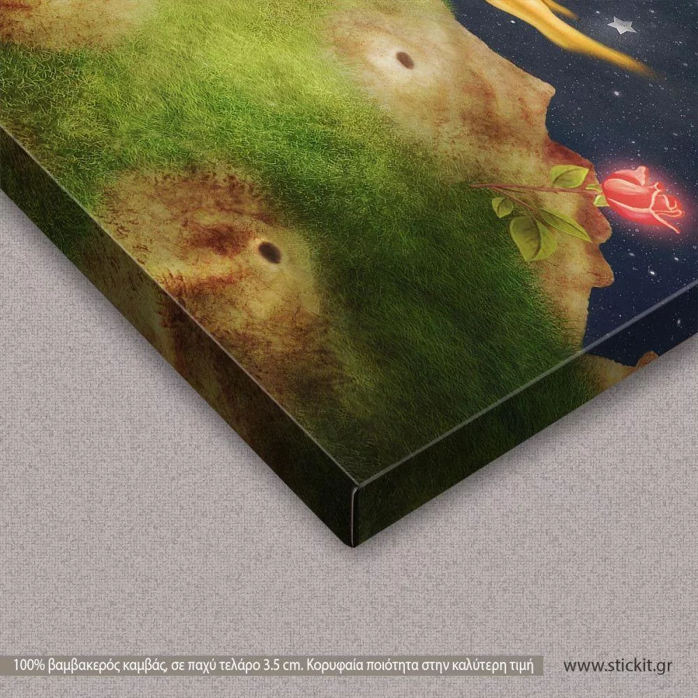 Πίνακας παιδικός σε καμβά The Little prince with a rose on a planet
