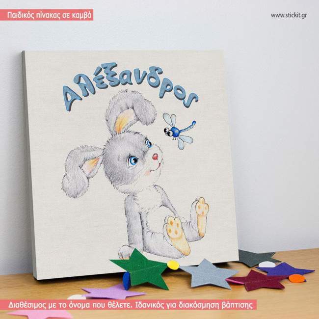 Πίνακας παιδικός σε καμβά Χαμογελαστό λαγουδάκι, με όνομα