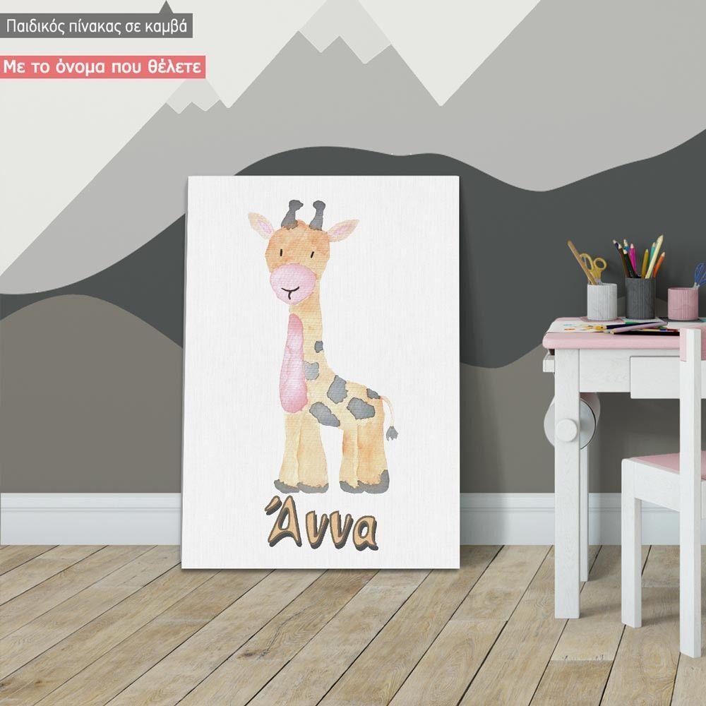 Πίνακας παιδικός σε καμβά Ζωάκια ζωγραφιστά, Καμηλοπάρδαλη