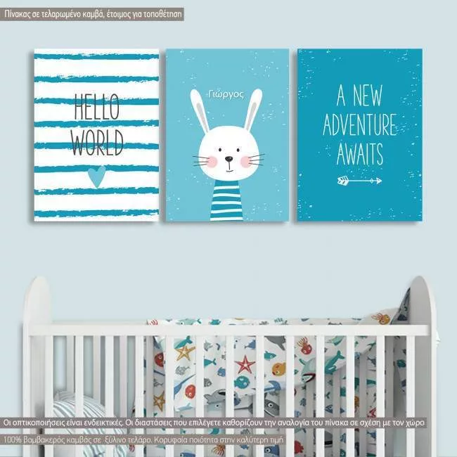 Πίνακας παιδικός σε καμβά Hello world II, τρίπτυχος