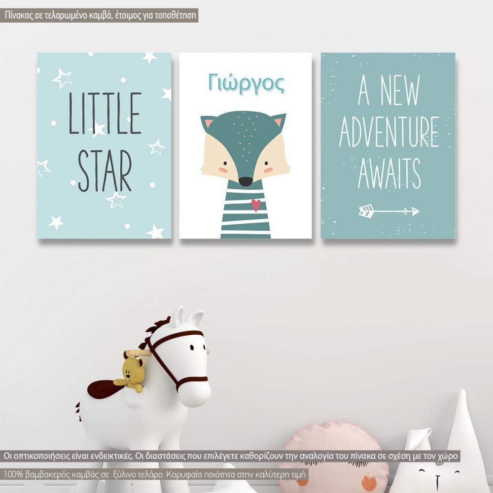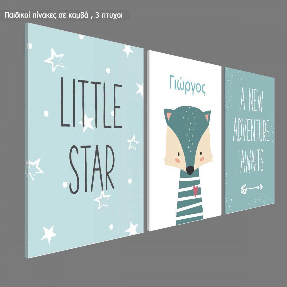 Πίνακας παιδικός σε καμβά Little star, τρίπτυχος