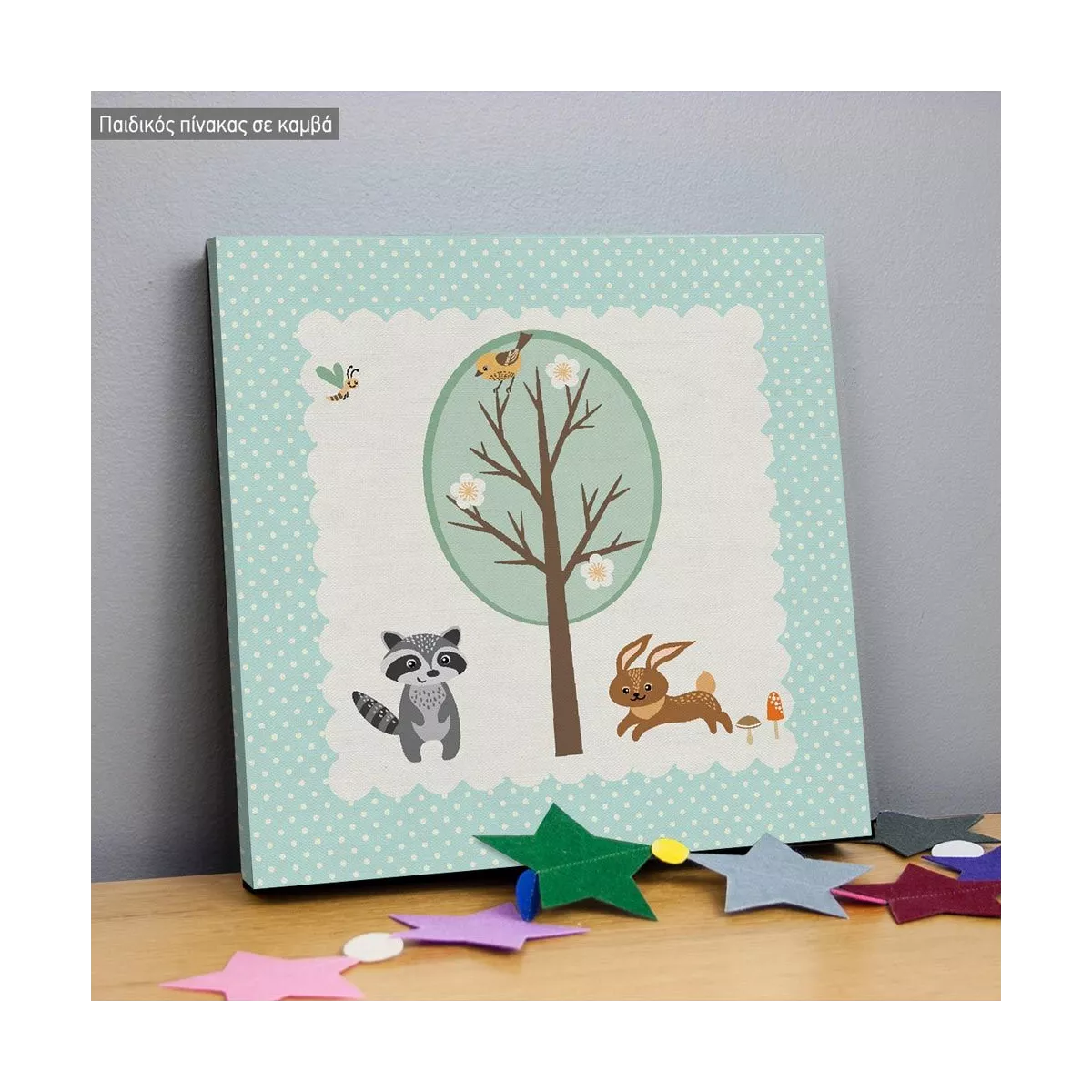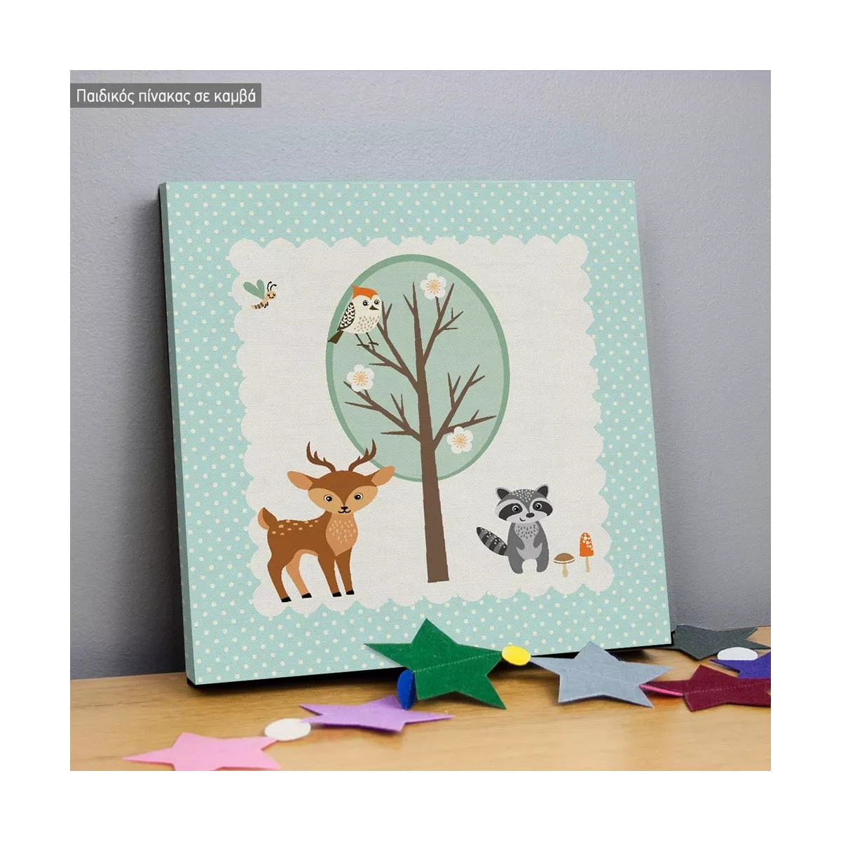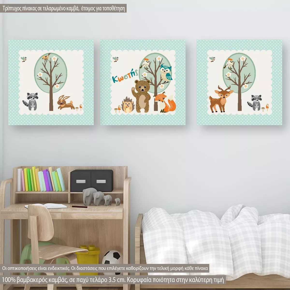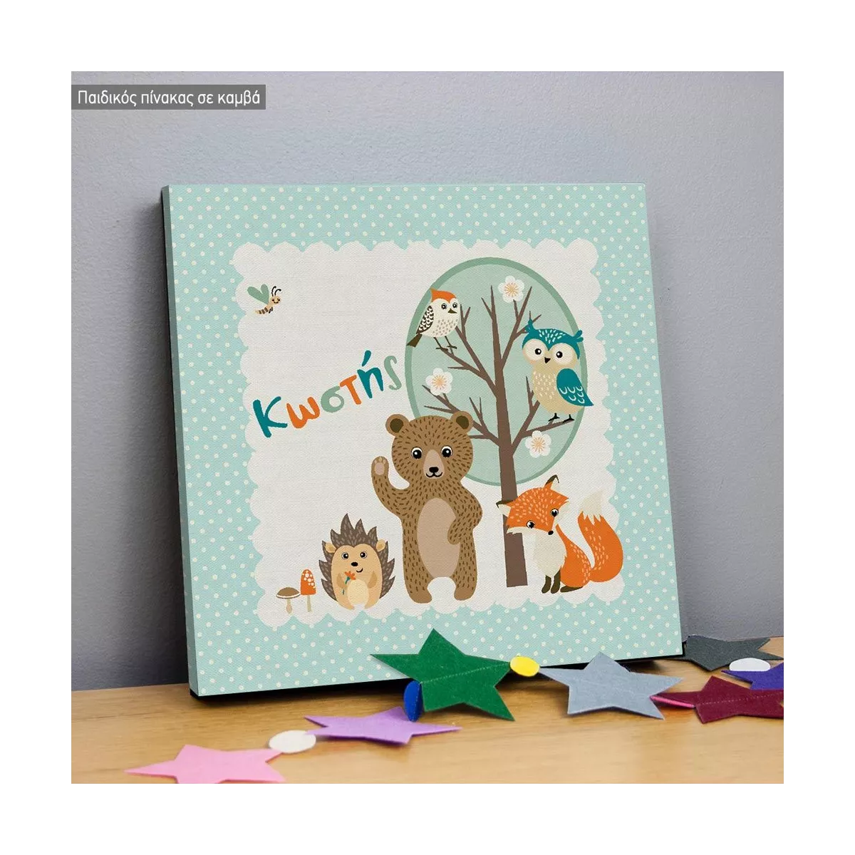 Αυτοκόλλητα τοίχου παιδικά Παρέα στο δάσος, με ζωάκια του δάσους και όνομα