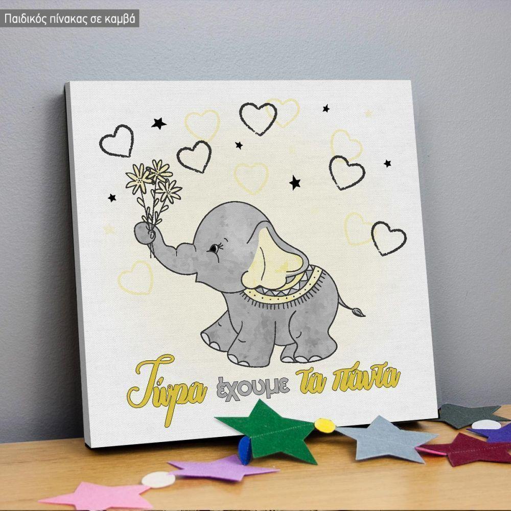 Πίνακας παιδικός σε καμβά Πρώτα ήμασταν εμείς, με όνομα, κίτρινο, τετράπτυχο