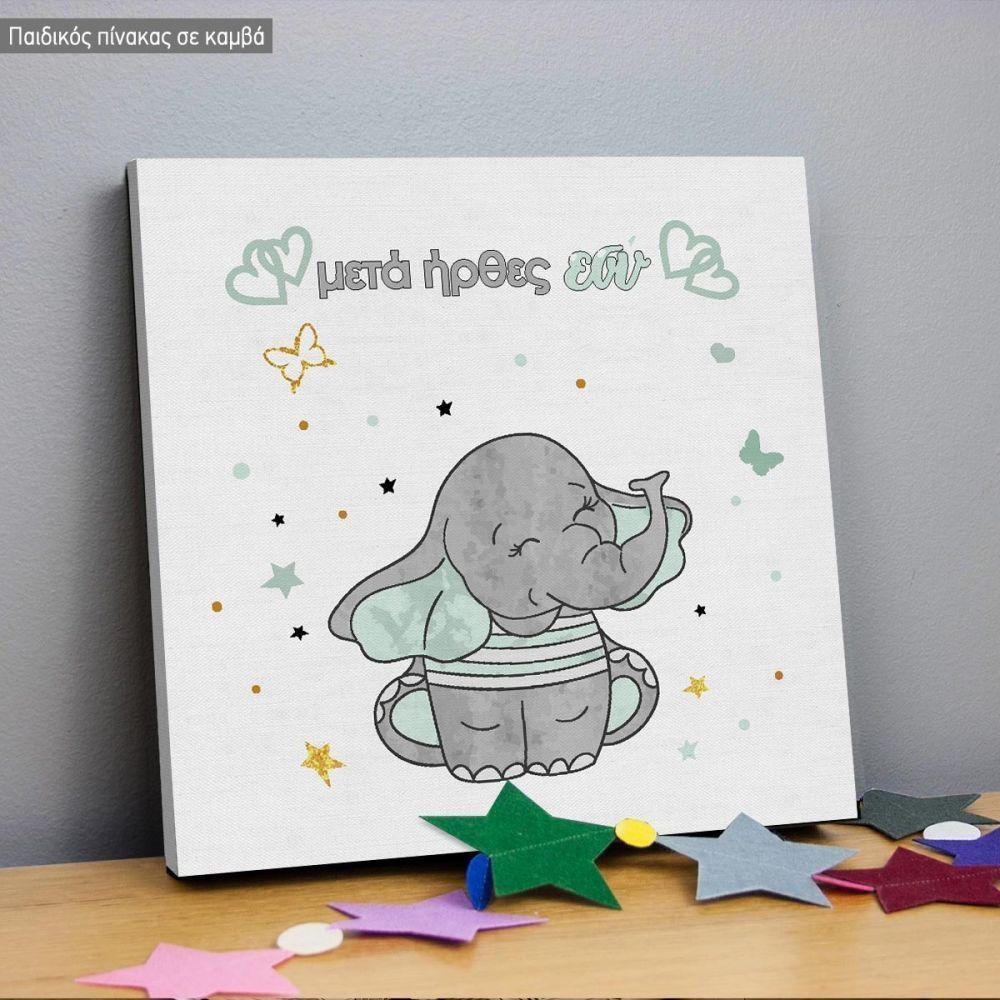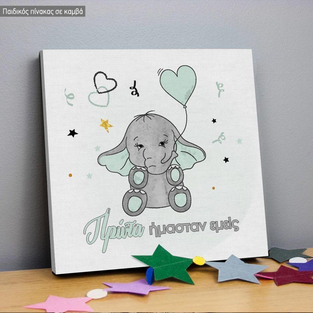 Πίνακας παιδικός σε καμβά Πρώτα ήμασταν εμείς, με όνομα, πράσινο, τετράπτυχο