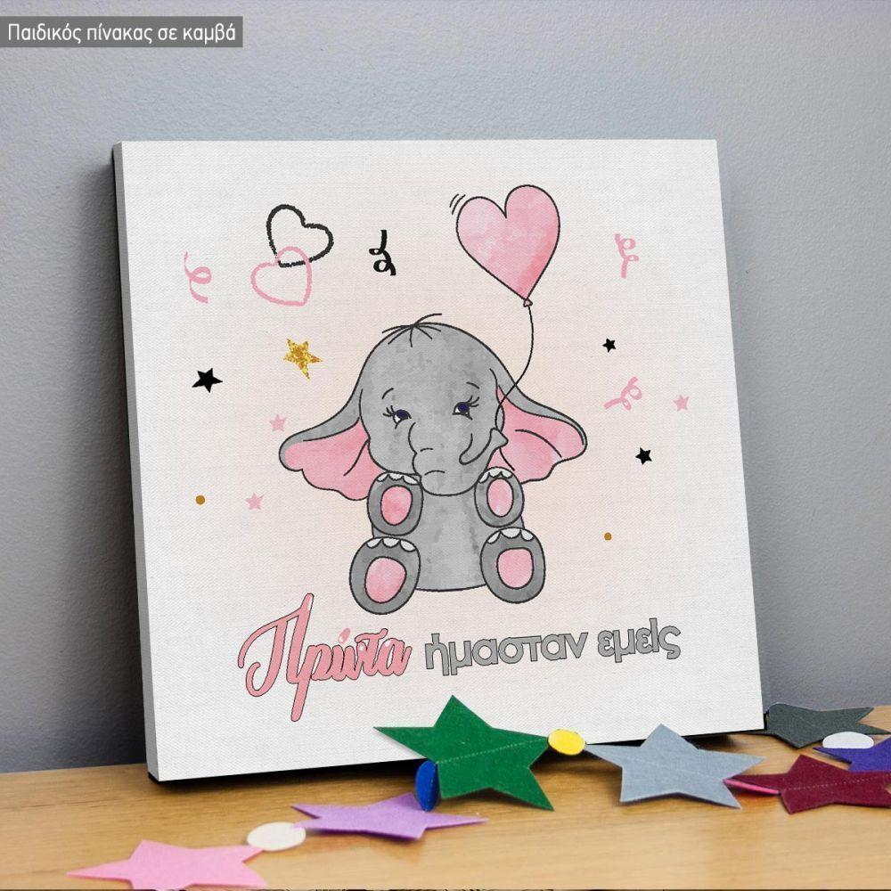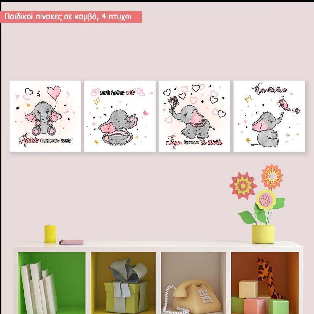 Πίνακας παιδικός σε καμβά Πρώτα ήμασταν εμείς, με όνομα, ροζ, τετράπτυχο