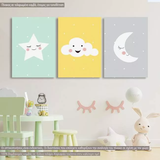 Πίνακας παιδικός σε καμβά Κοιμισμένο φεγγαράκι, με όνομα