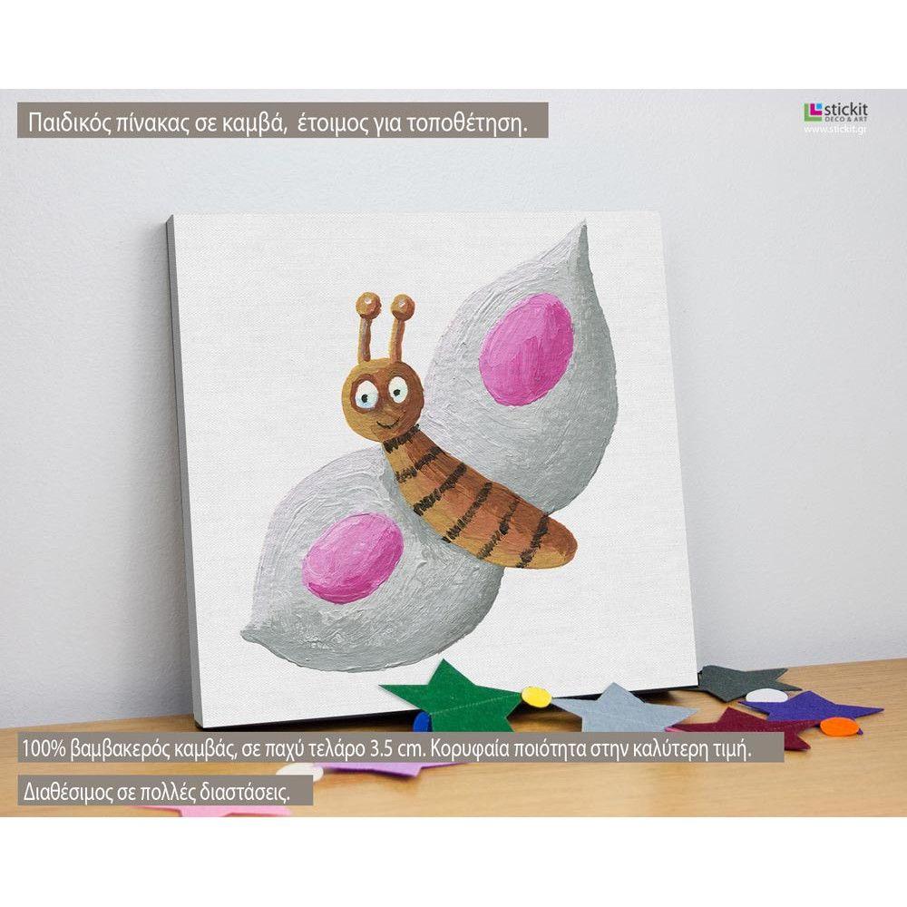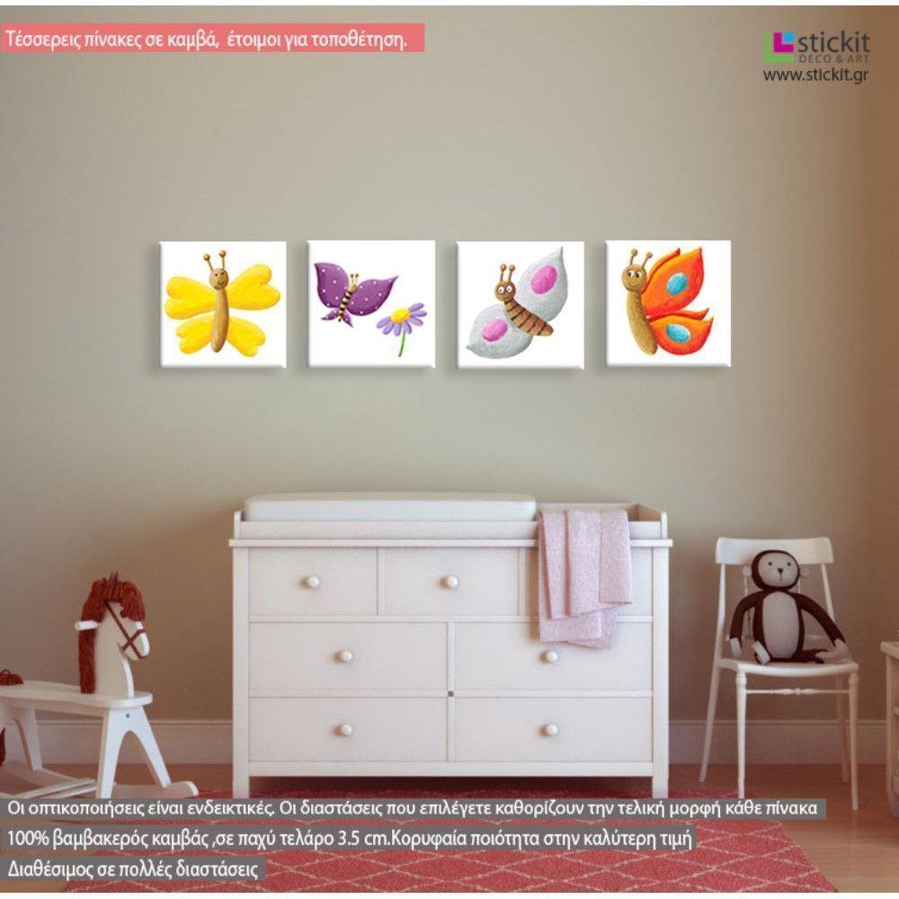 Πίνακας παιδικός σε καμβά Ζωγραφισμένες πεταλούδες, set, τετράπτυχο