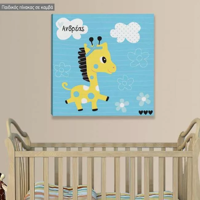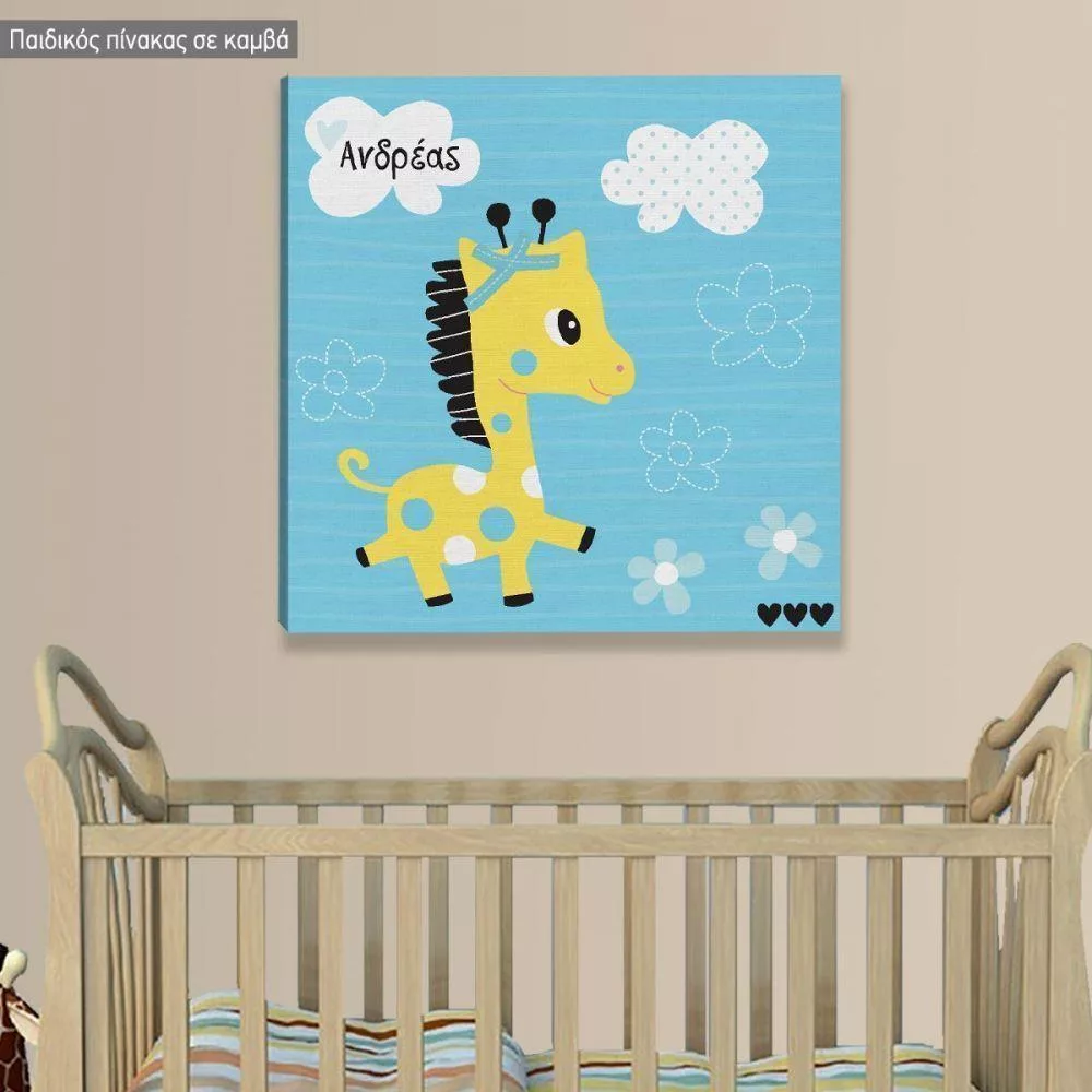 Πίνακας παιδικός σε καμβά Χαριτωμένη καμηλοπάρδαλη, με όνομα