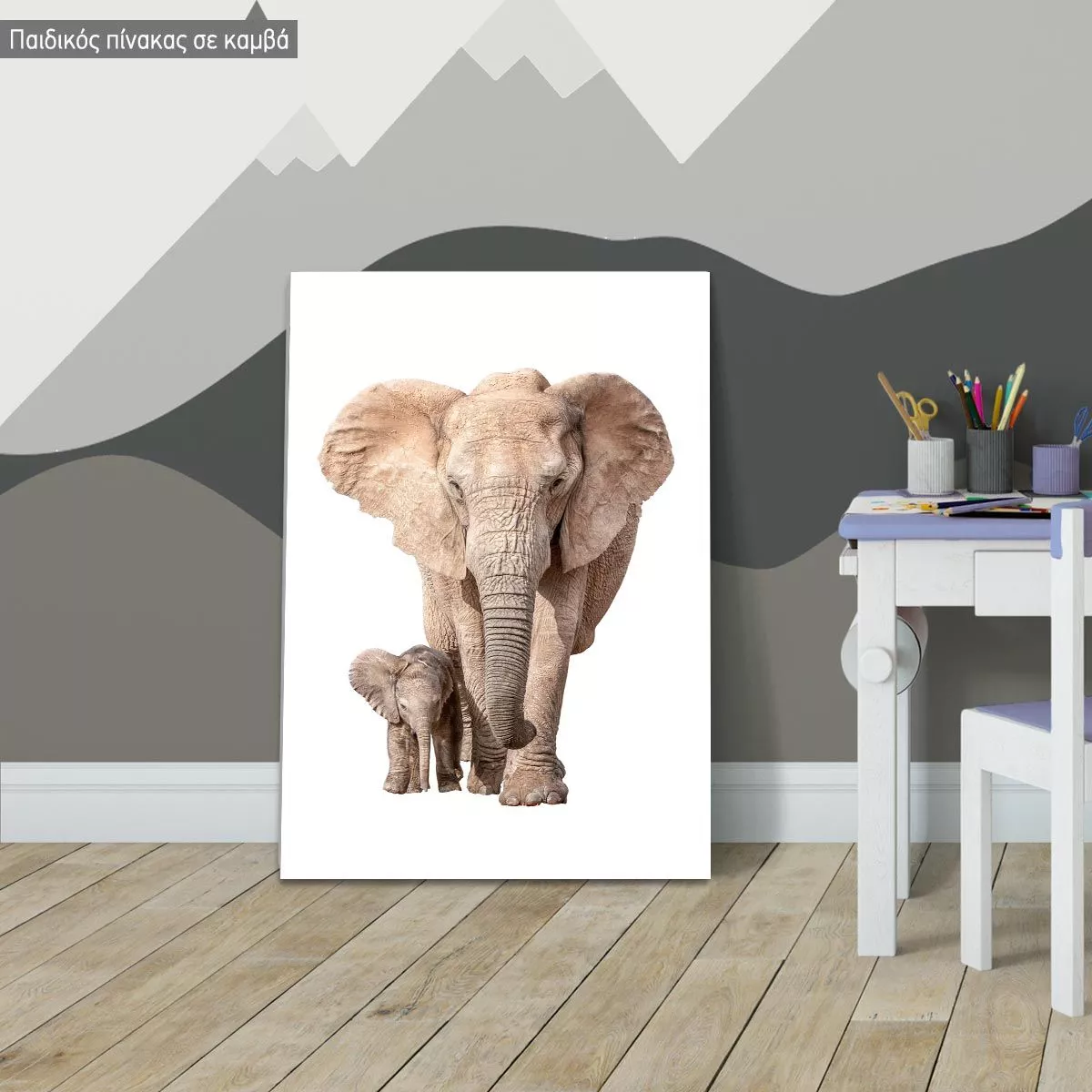 Πίνακας παιδικός σε καμβά Ελεφαντάκι με τη μαμά