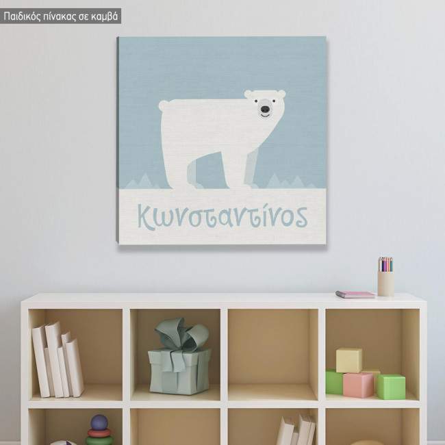 Πίνακας παιδικός σε καμβά Αρκουδάκι, λευκό με όνομα