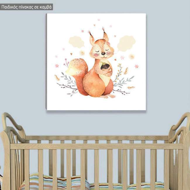 Πίνακας παιδικός σε καμβά Baby squirrel