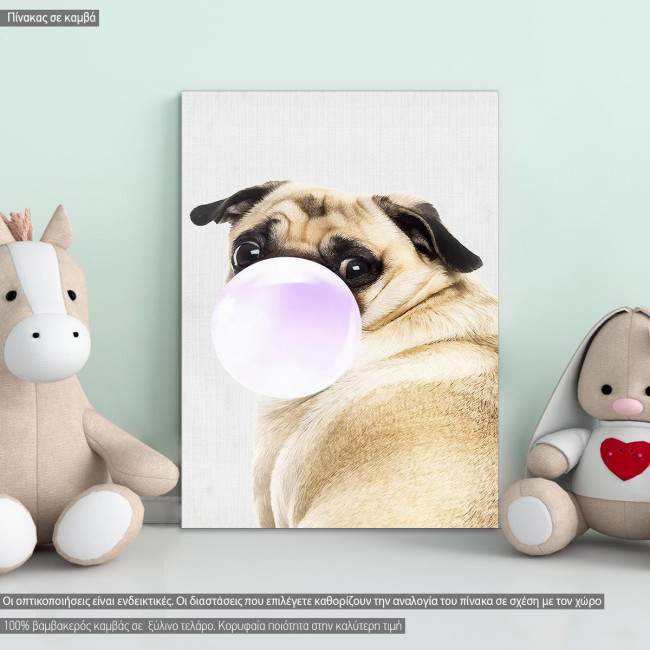 Πίνακας παιδικός σε καμβά, Παγκ (Bubble pug)