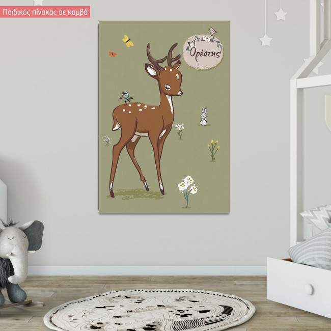 Πίνακας παιδικός σε καμβά Ελαφάκι, με όνομα