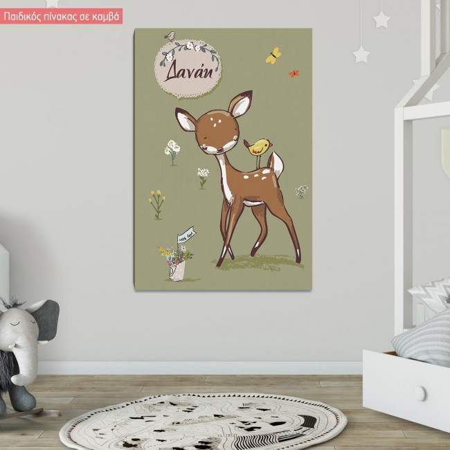 Πίνακας παιδικός σε καμβά Ελαφάκι II, με όνομα