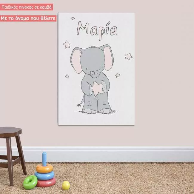 Πίνακας παιδικός σε καμβά Ελεφαντάκι στο φεγγάρι, με όνομα