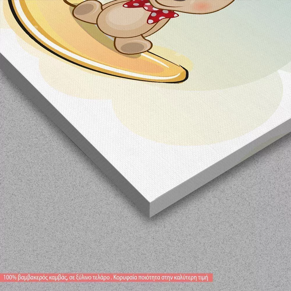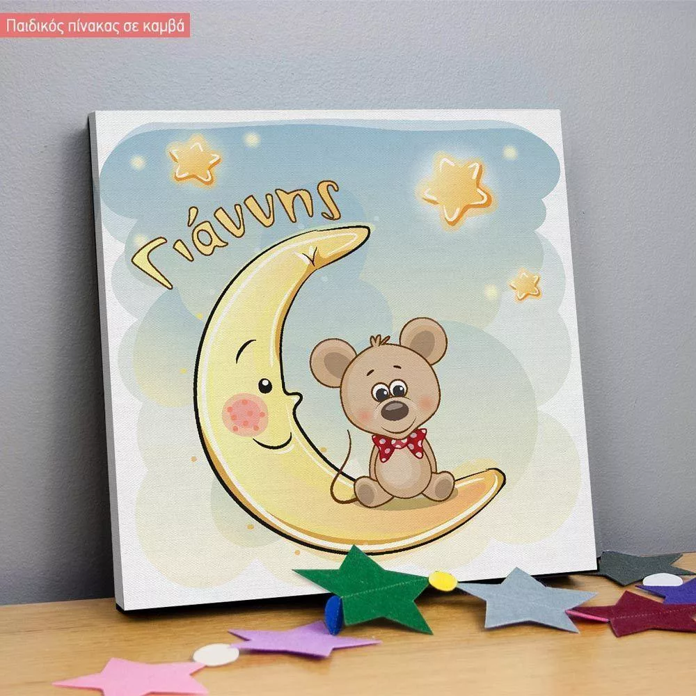 Πίνακας παιδικός σε καμβά Στο φεγγάρι, ποντικάκι, αστεράκια και όνομα
