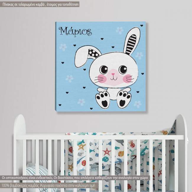 Πίνακας παιδικός σε καμβά Γλυκό Κουνελάκι, με όνομα