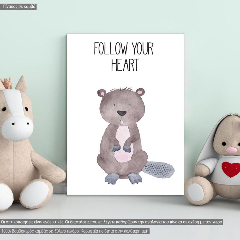Πίνακας παιδικός σε καμβά Woodland animals, Κάστορας ζωγραφιστός
