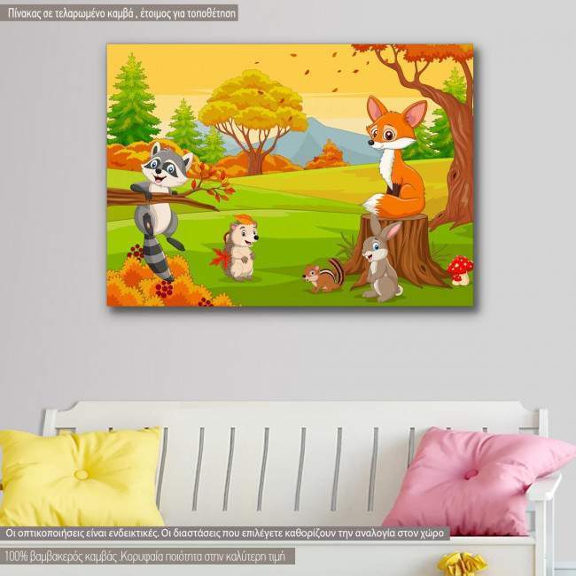 Πίνακας παιδικός σε καμβά Ζωάκια στο δάσος το φθινόπωρο