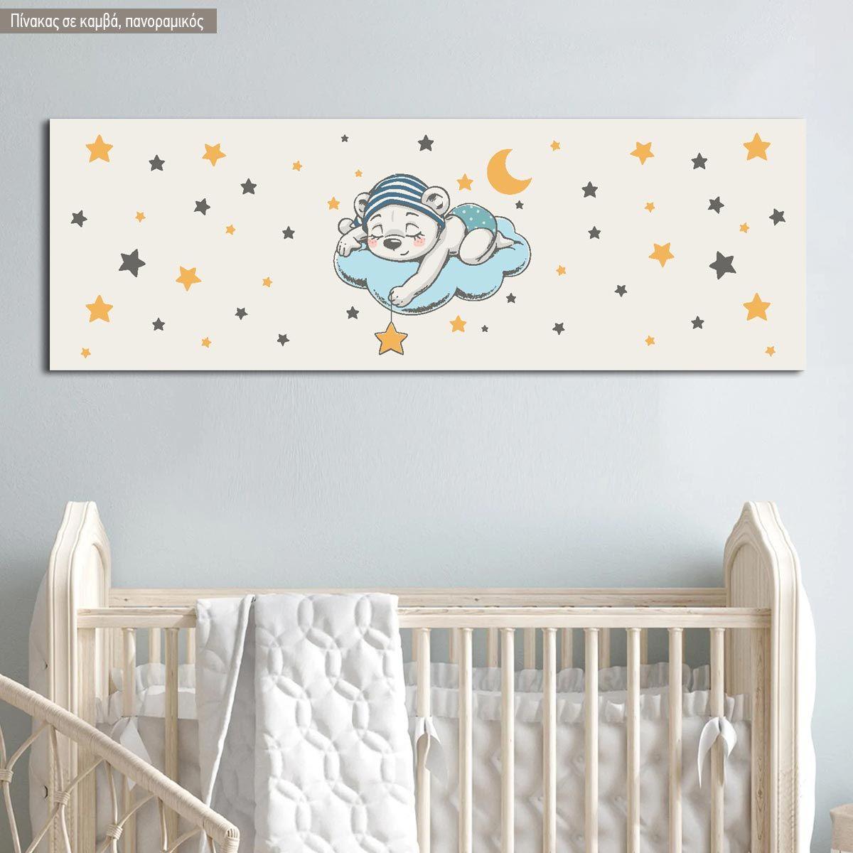 Πίνακας σε καμβά Dreaming bear, αρκουδάκι, πανοραμικός
