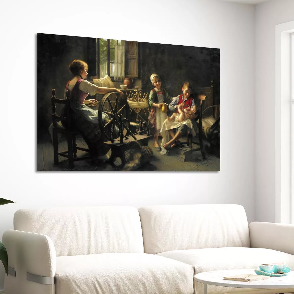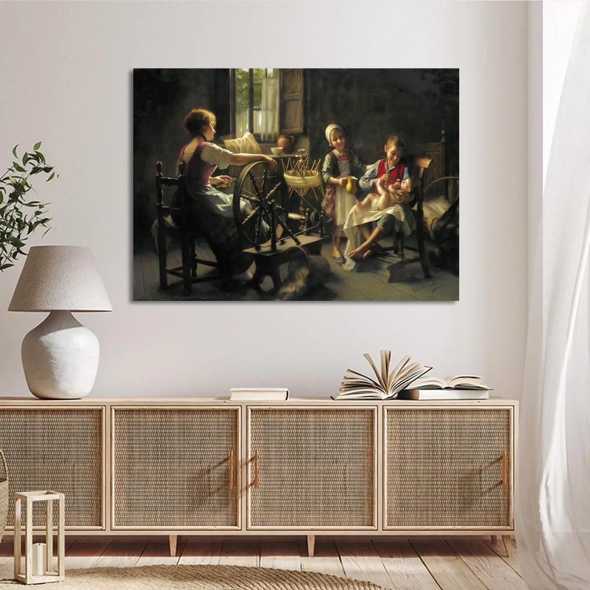 Πίνακας ζωγραφικής At the spinning wheel, Battista Torriglia G. B.