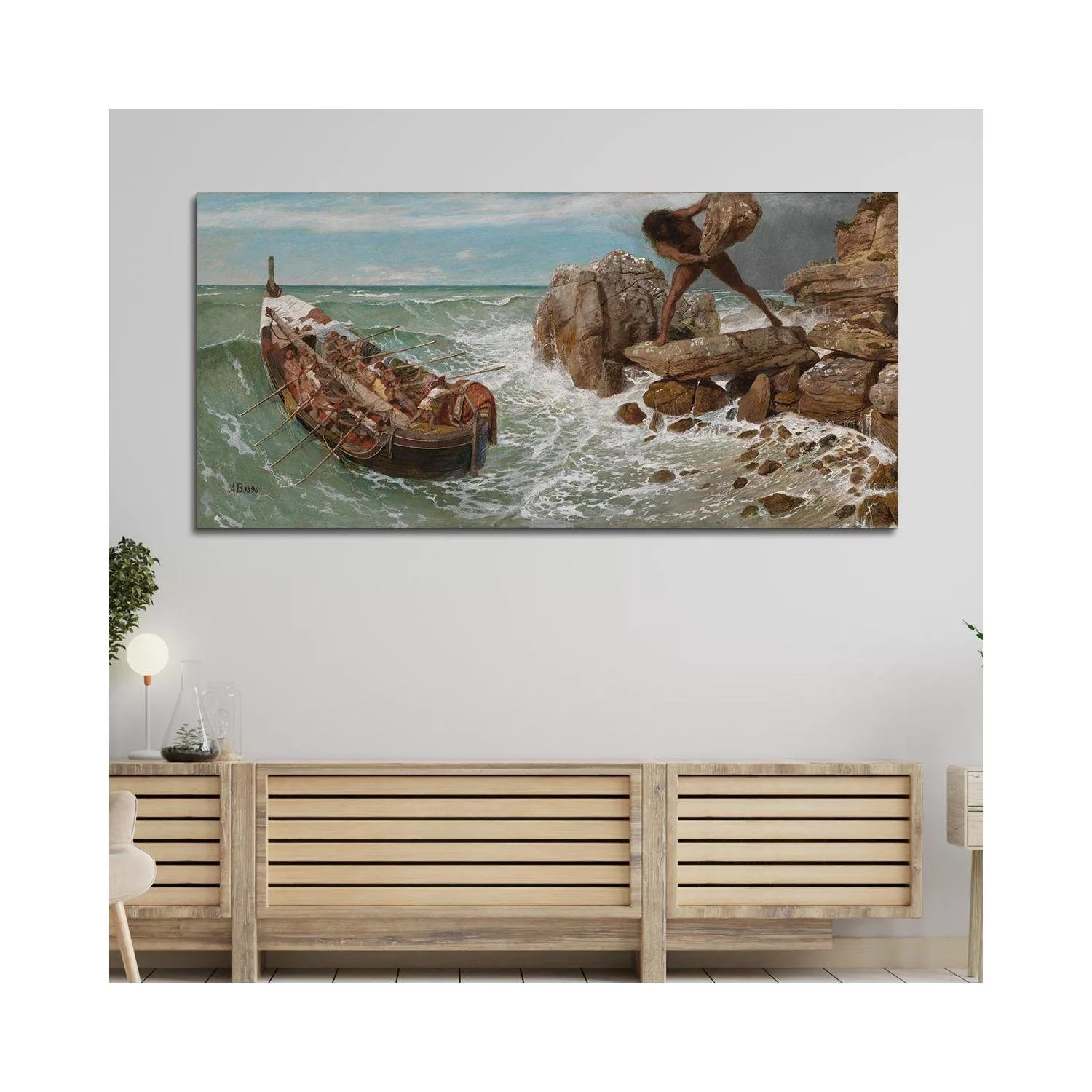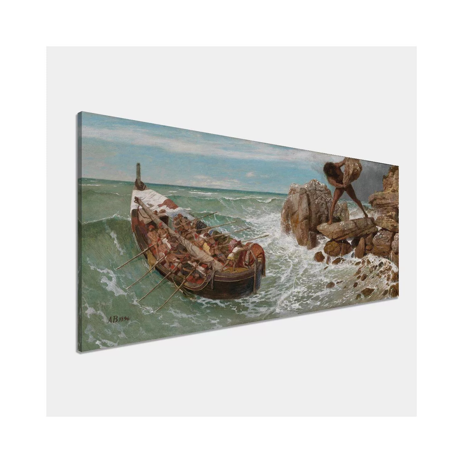 Πίνακας σε καμβά Οδυσσέας και Πολύφημος Arnold Böcklin πανοραμικός Καμβάς τελαρωμένος Όψη 3