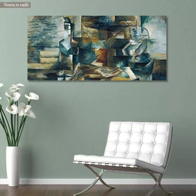 Πίνακας σε καμβά Bottle and fishes detail, Braque G, πανοραμικός