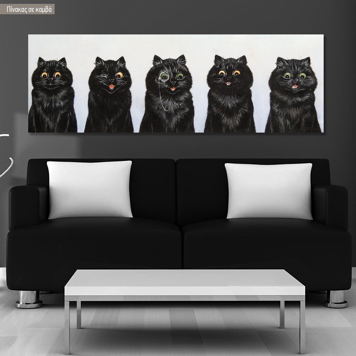 Πίνακας σε καμβά Five black cats, Wain L, πανοραμικός