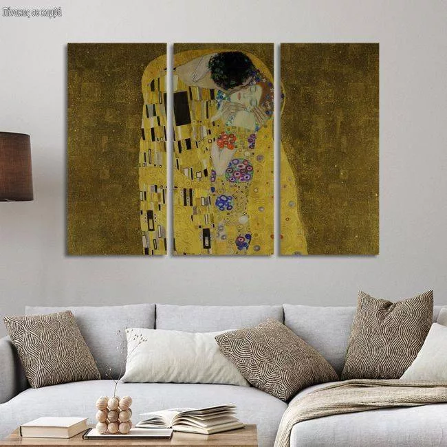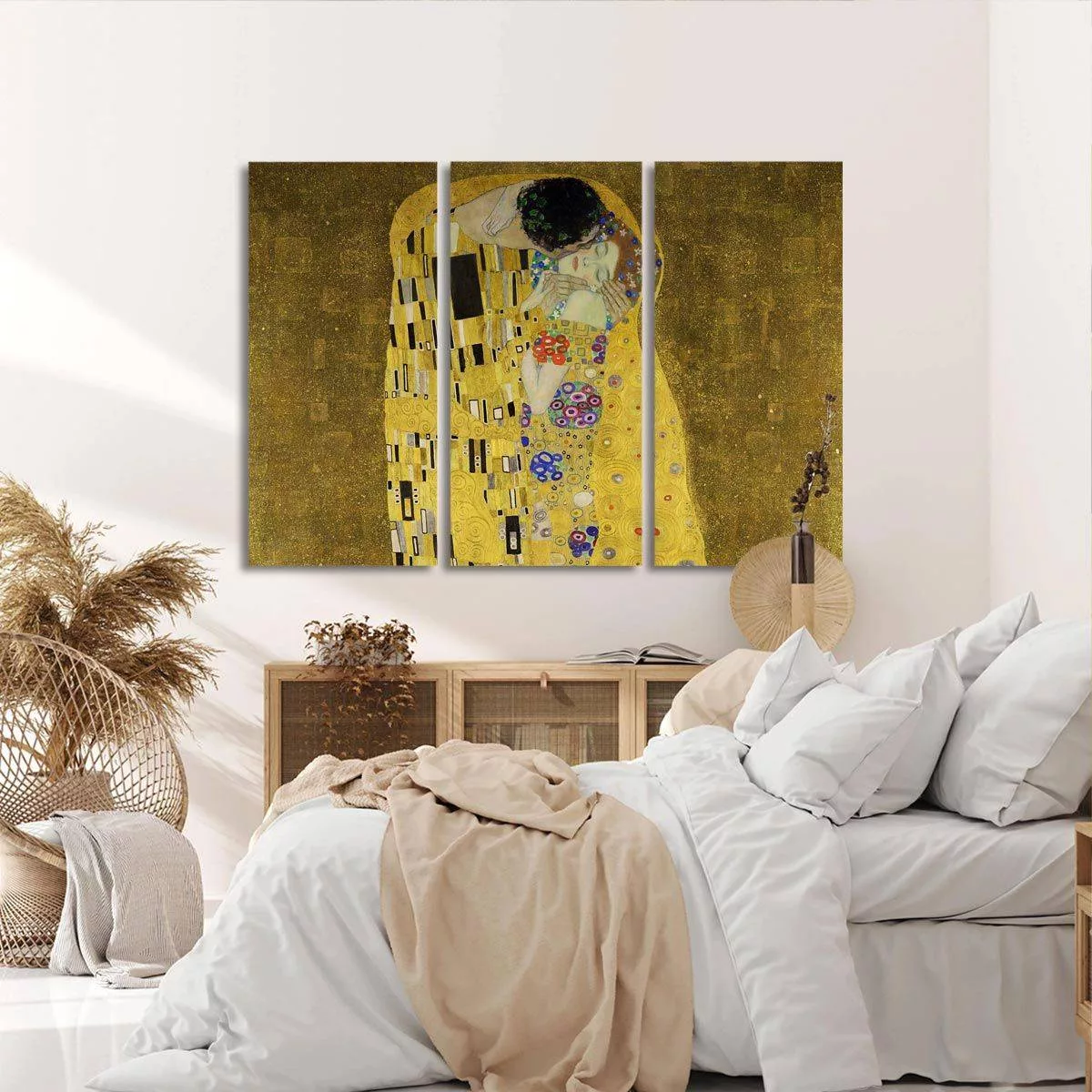 Πίνακας σε καμβά The kiss (portrait), Klimt Gustav, τρίπτυχος