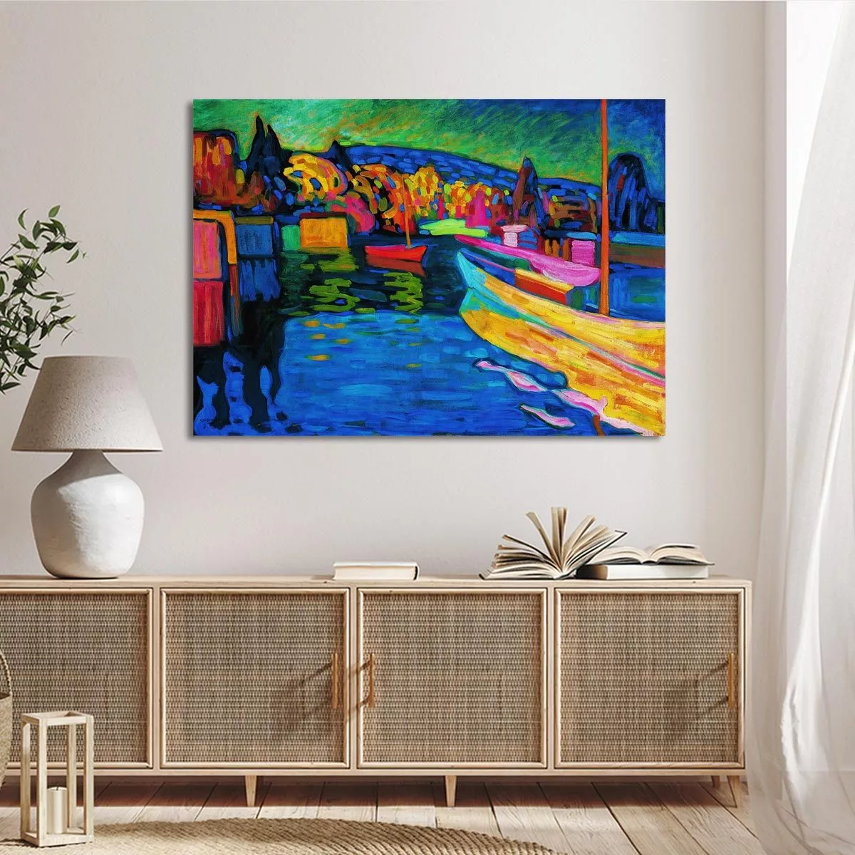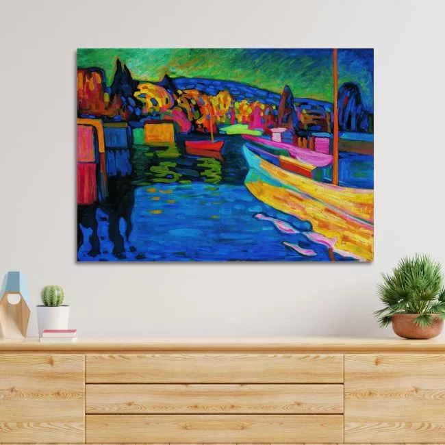 Πίνακας ζωγραφικής Autumn landscape with boats, Kandinsky W.