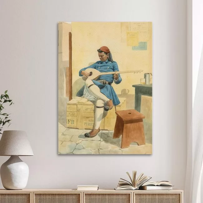 Πίνακας ζωγραφικής Εύζωνας με ταμπουρά, Προσαλέντης Αιμίλιος
