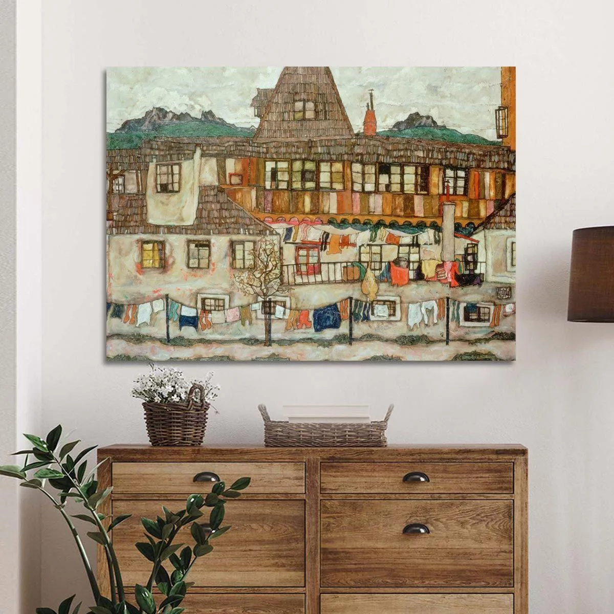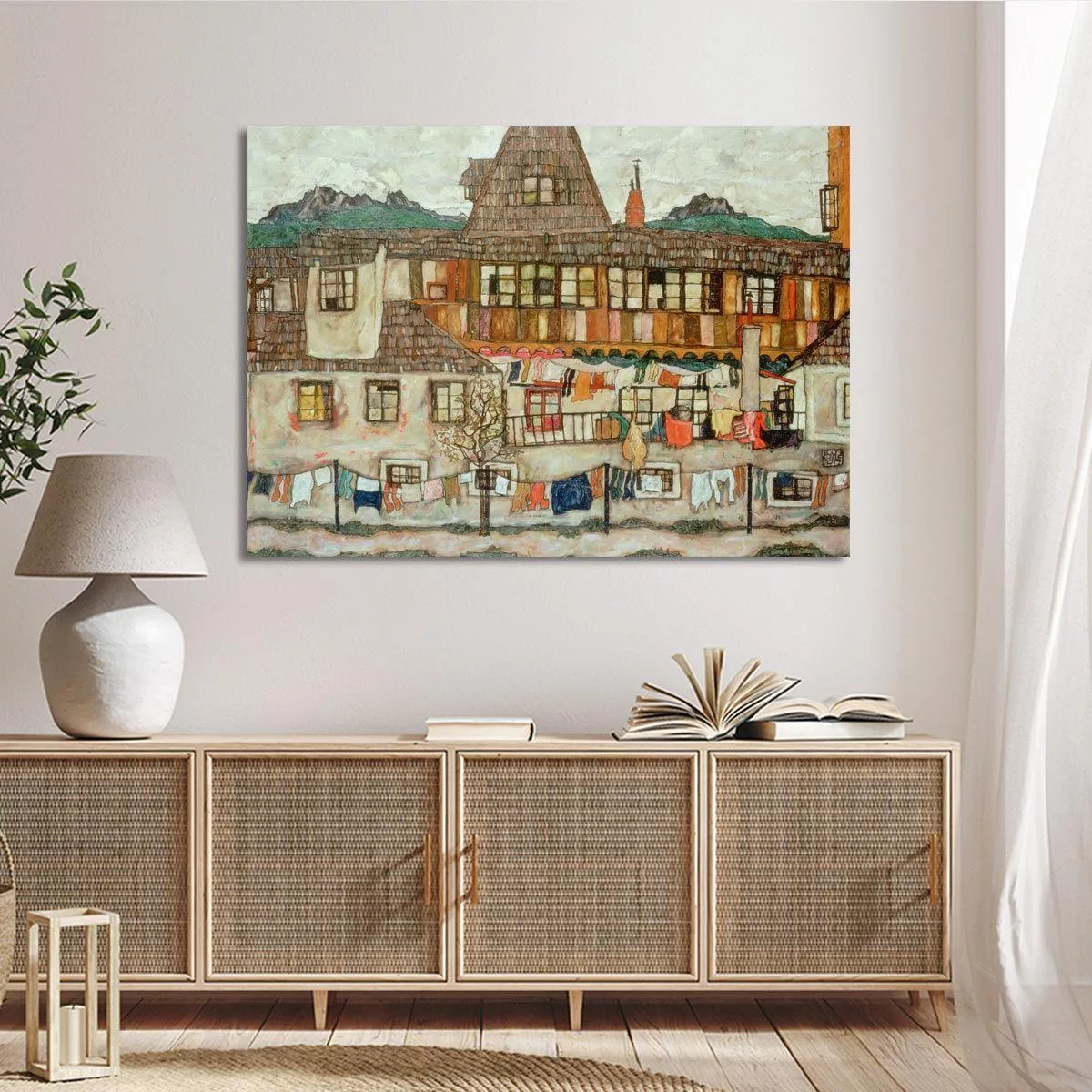 Πίνακας ζωγραφικής Houses with drying laundry, Schiele E.