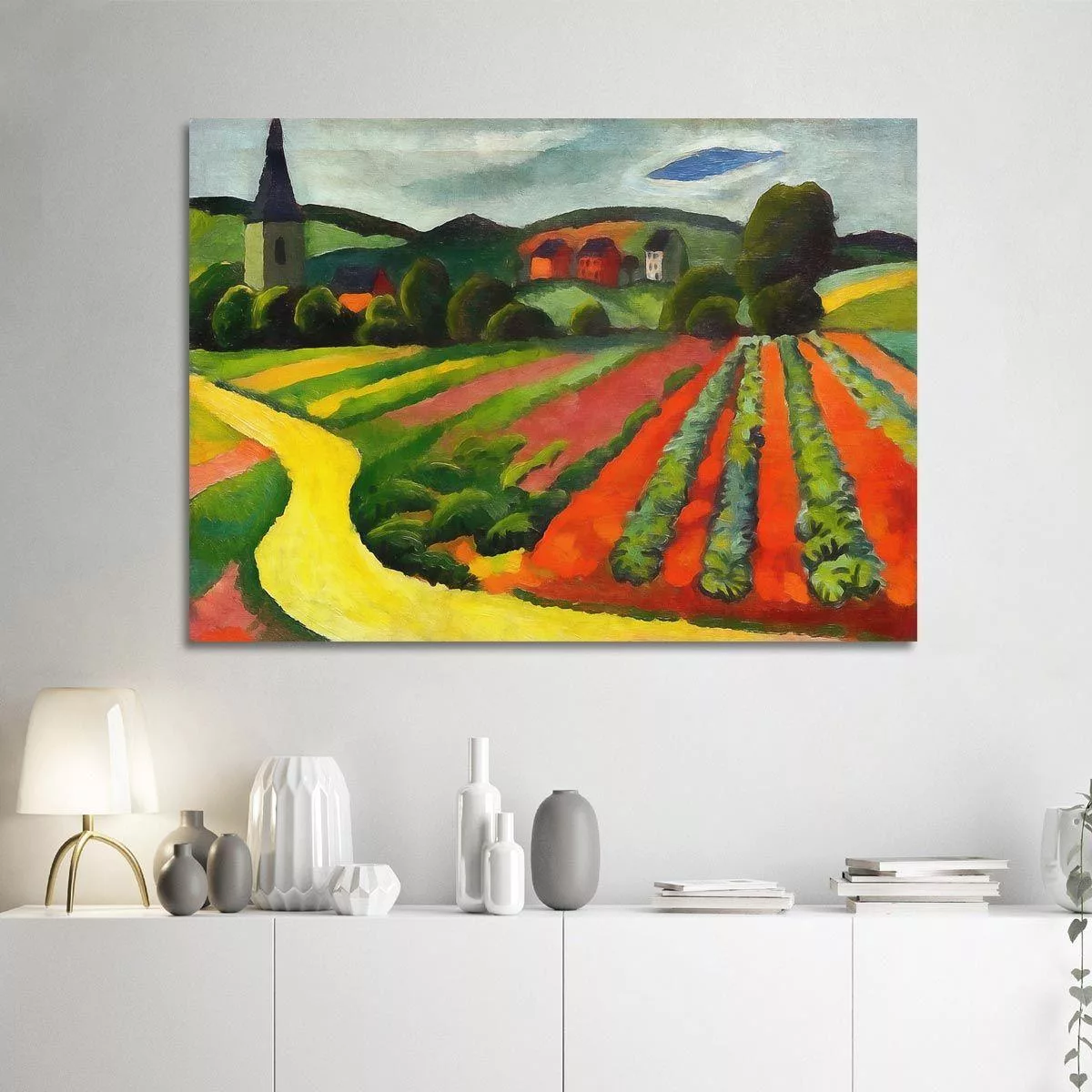Πίνακας ζωγραφικής Landscape with church and path, Macke August