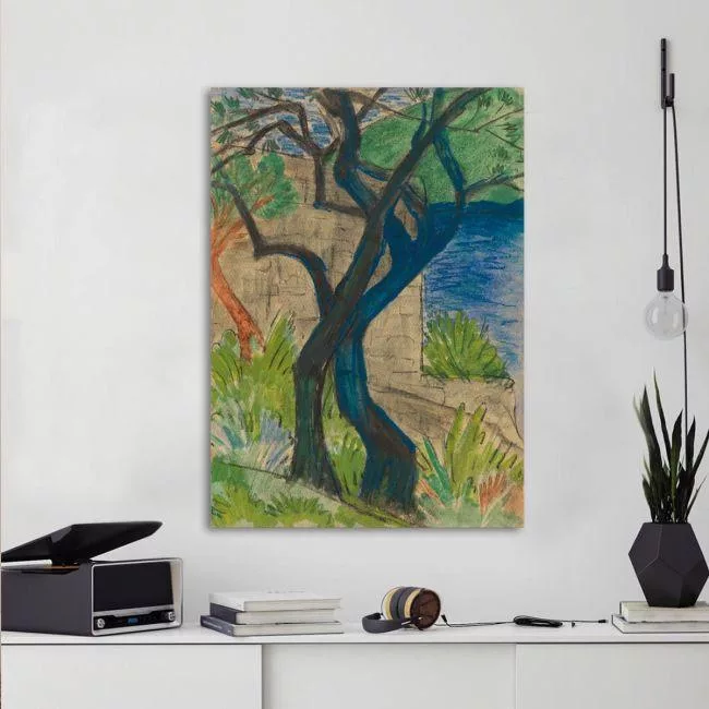 Πίνακας ζωγραφικής River bank with blue tree, O. Mueller