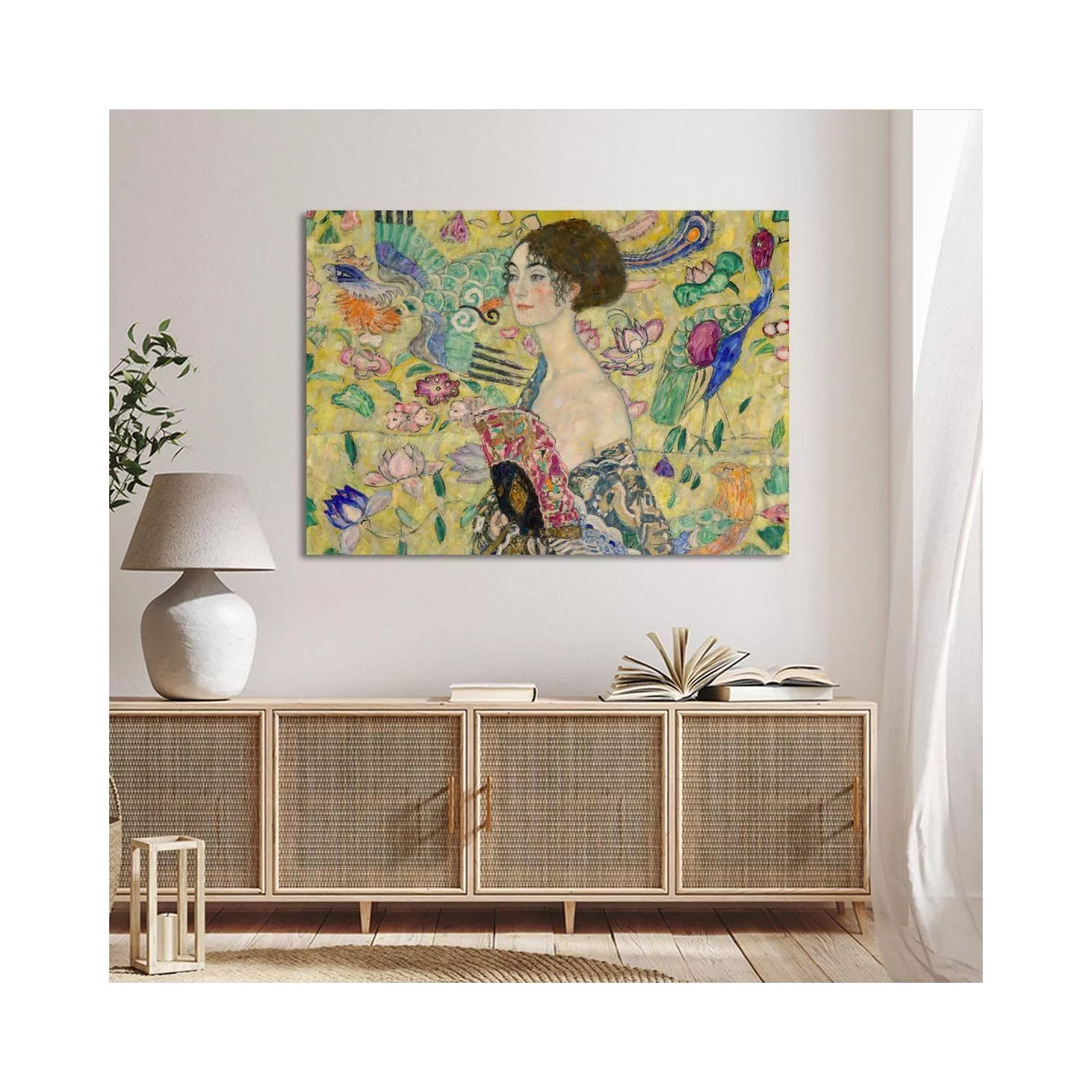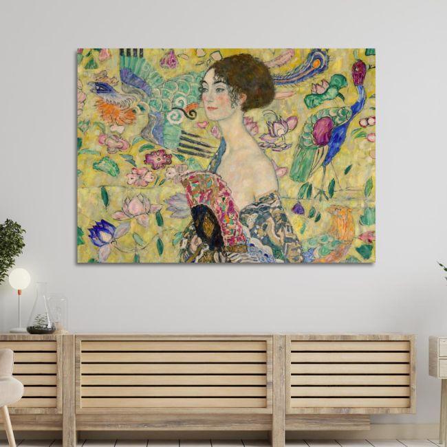 Πίνακας ζωγραφικής σε καμβά Lady with a fan, οριζόντιο, Klimt Gustav