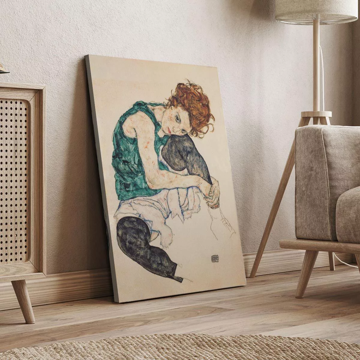 Πίνακας ζωγραφικής Seated woman with bent knee, Schiele E.