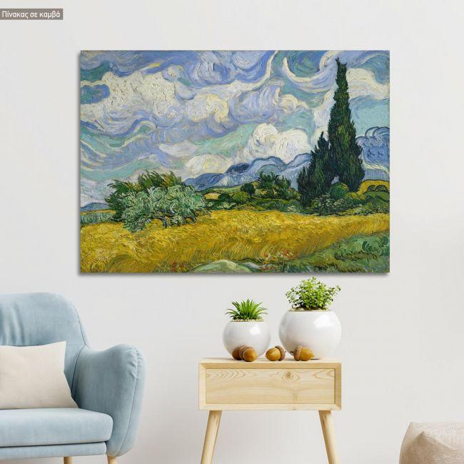 Πίνακας ζωγραφικής Wheat field with cypresses, Vincent van Gogh