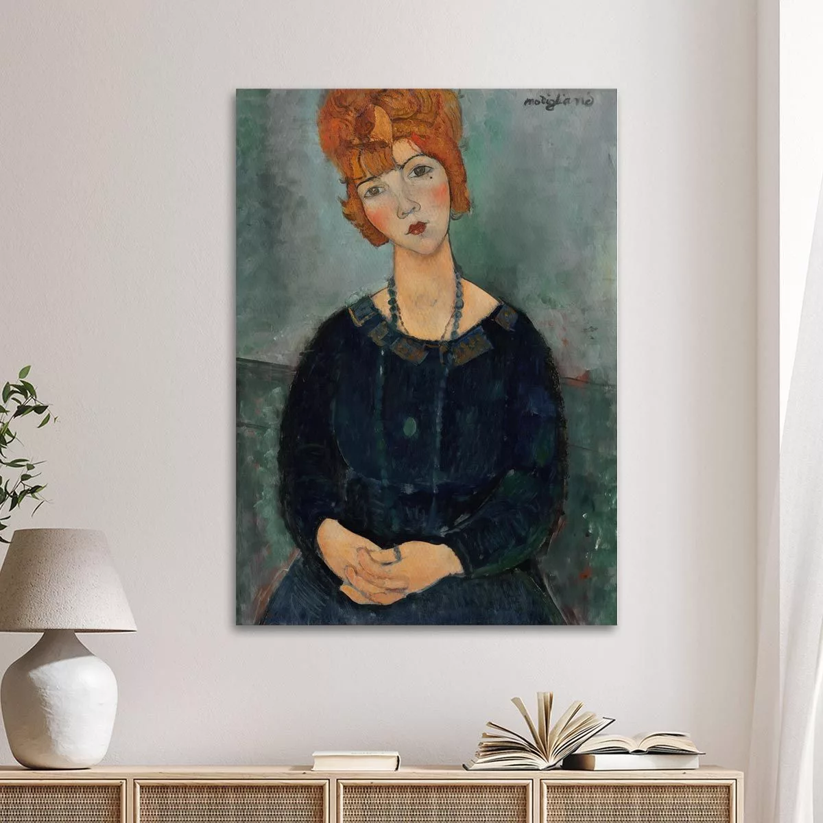 Πίνακας ζωγραφικής Woman with a necklace Modigliani A. Καμβάς τελαρωμένος Όψη 1