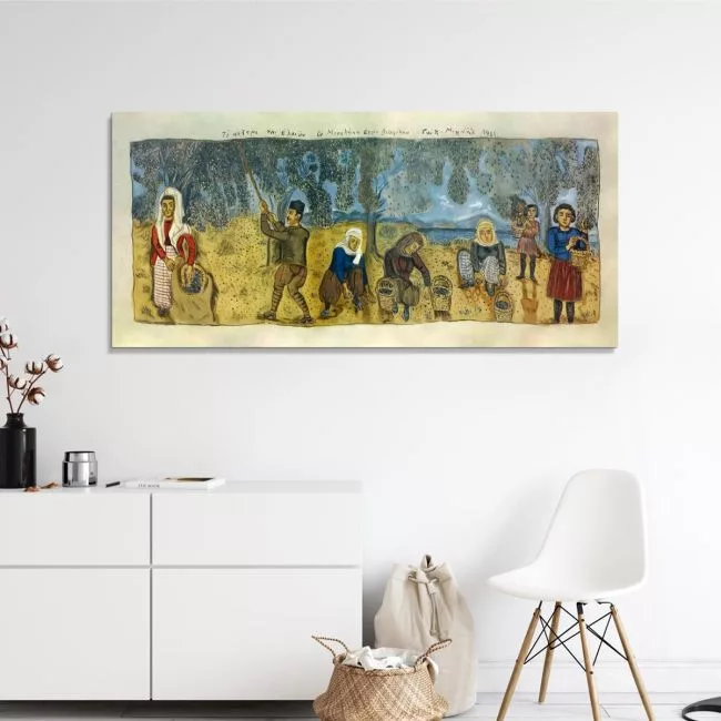 Πίνακας σε καμβά Μάζεμα ελιών, πανοραμικός, Θεόφιλος