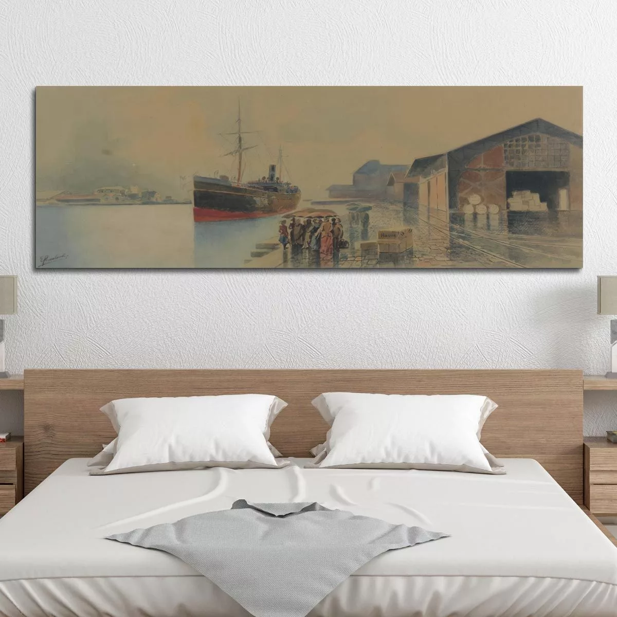 Πίνακας σε καμβά Ο παλιός Πειραιάς, Προσαλέντης Αιμίλιος, πανοραμικός