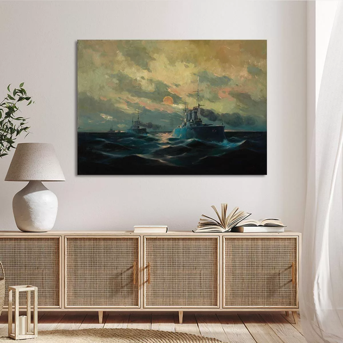 Πίνακας σε καμβά Το Αβέρωφ, επικεφαλής του Ελληνικού στόλου, Χατζής Β.