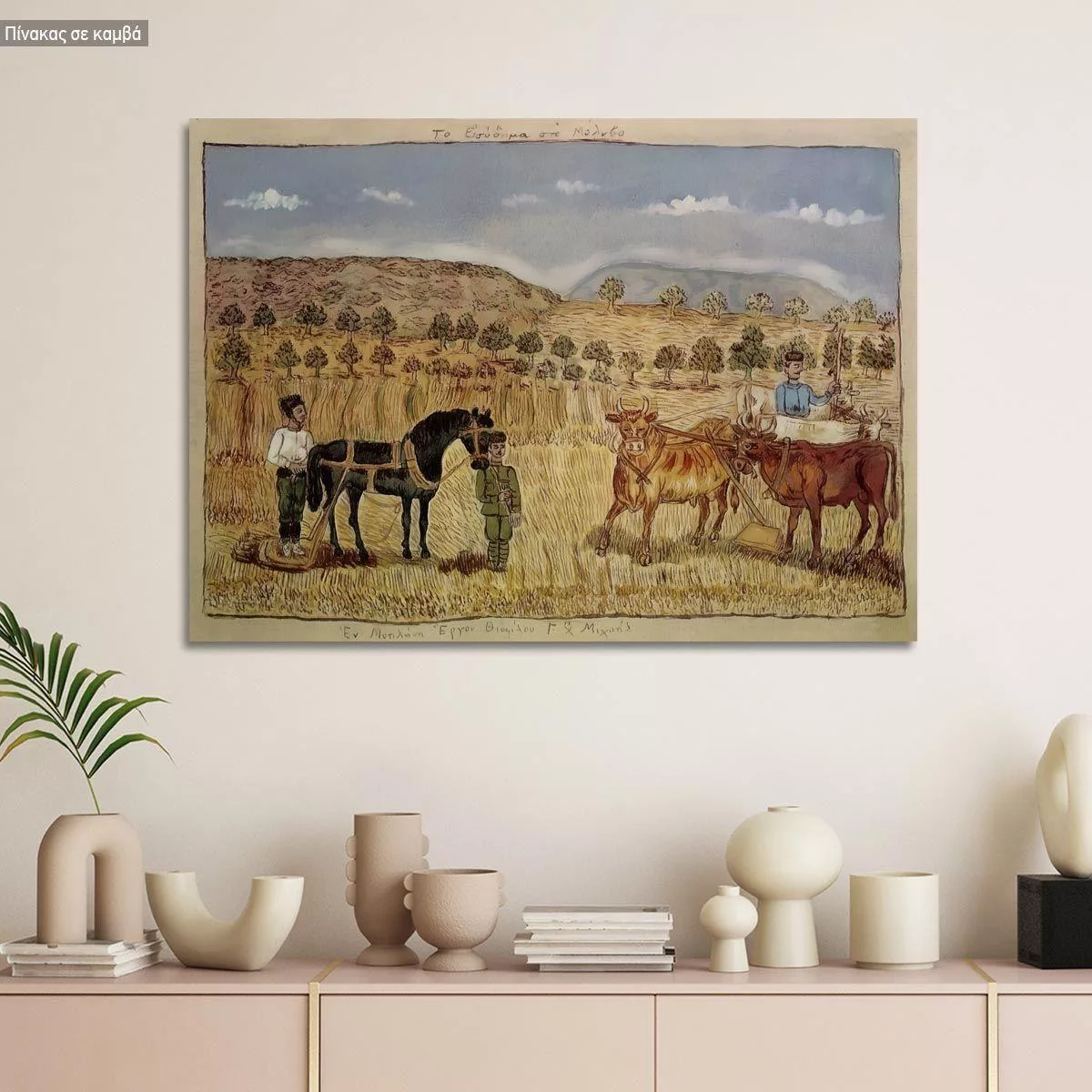 Πίνακας σε καμβά Το εισόδημα στο Μόλυβο, Θεόφιλος