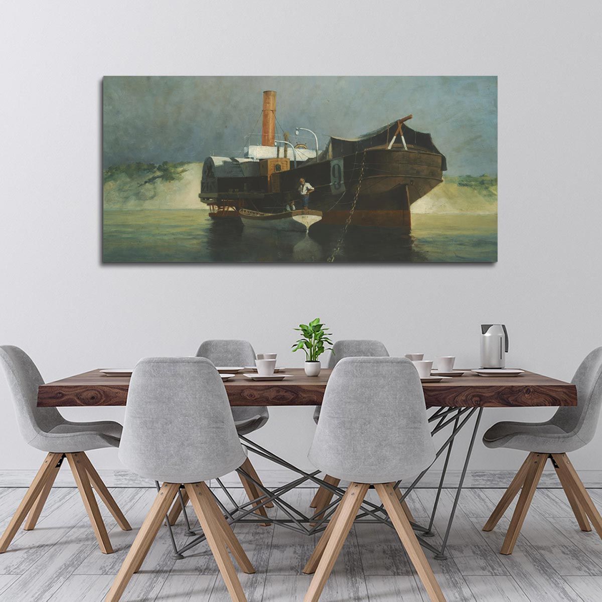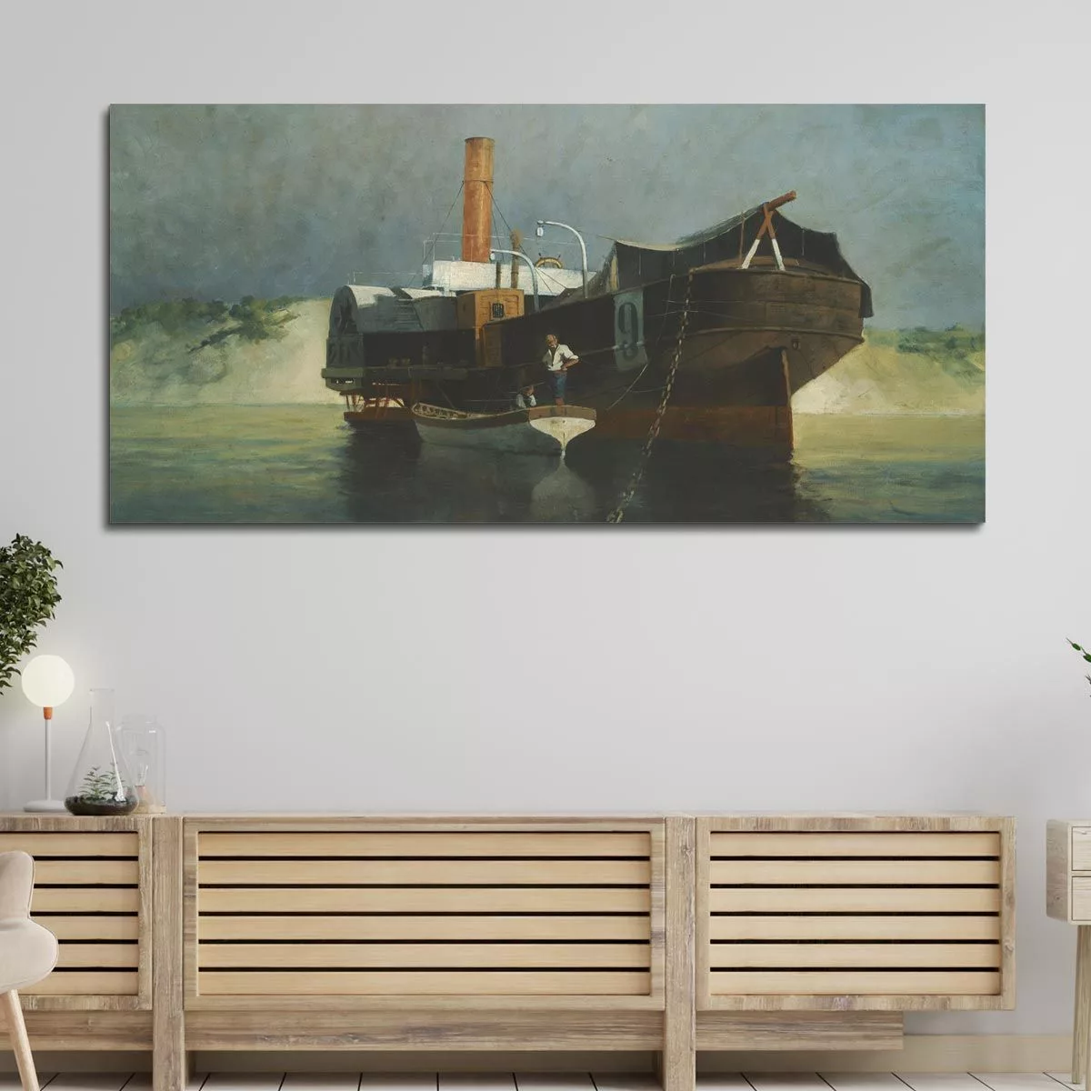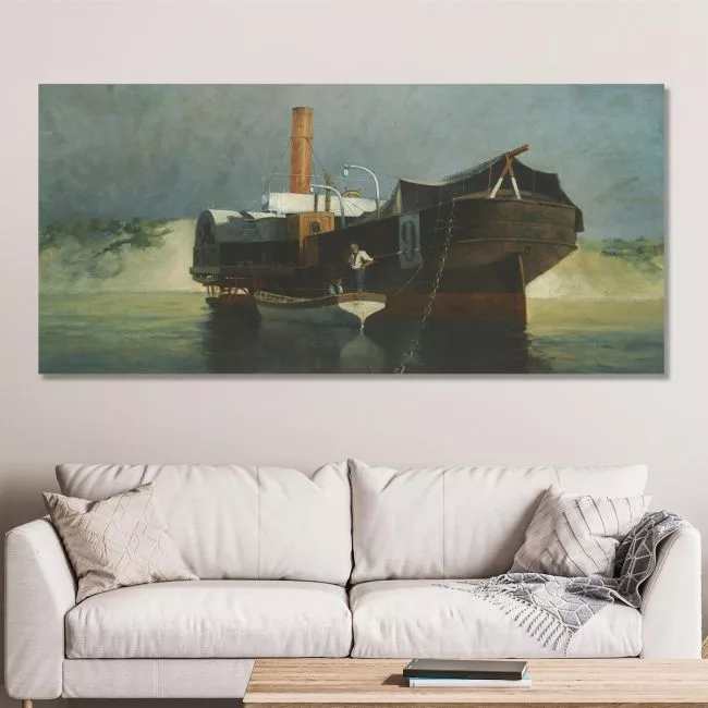 Πίνακας σε καμβά Βαπόρι με ρόδες αραγμένο, Προσαλέντης Αιμίλιος, πανοραμικός