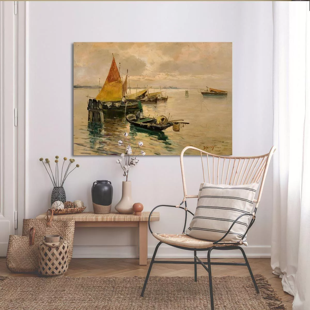Πίνακας σε καμβά Βάρκες σε ήρεμα νερά, Χατζής Β