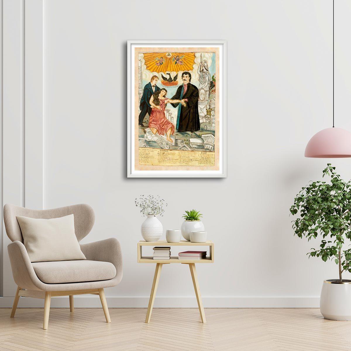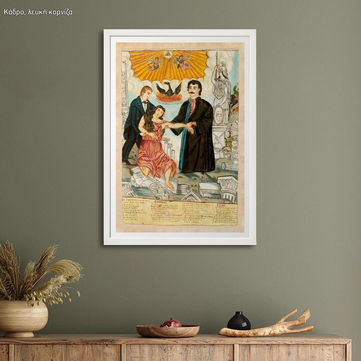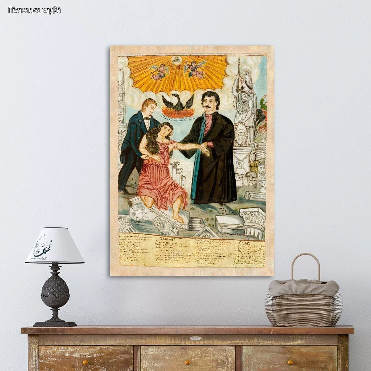 Πίνακας ζωγραφικής Κοραής και Φεραίος, σώζουν την πληγωμένη Ελλάδα, Θεόφιλος