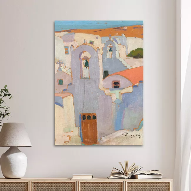 Εισάγετε την αύρα του ελληνικού καλοκαιριού στον χώρο σας με το «Κυκλαδικό τοπίο» του Μαλέα. Ένα έργο που δονείται από το φως, την καθαρότητα των μορφών και την χαρακτηριστική χρωματική παλέτα ενός από τους σπουδαιότερους Έλληνες μοντερνιστές.